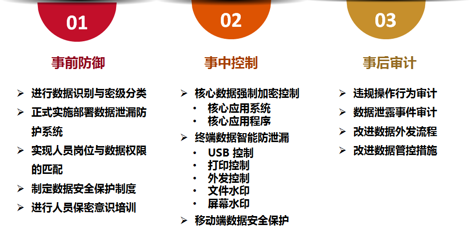 数据安全卫士系统DGS采用主动的智能安全加密策略,从文件创建到删除的整个生命周期都对其进行智能化的安全保护,实现“事前防御-事中控制-事后审计”的整体解决方案。